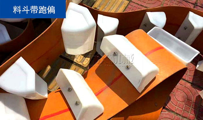 料斗脫落是指在生產(chǎn)中,料斗從料斗帶上掉落的現(xiàn)象。料斗掉落時(shí),會(huì)產(chǎn)生異常的響聲,要及時(shí)的停機(jī)檢查,否則,將導(dǎo)致更多的料斗變形、脫落;在連接料斗的位置,料斗帶撕裂。