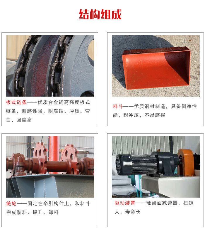 8.操作方便,維修少,易損件少。輸送鏈為套筒滾子鏈,誘導(dǎo)式重力卸料,用于各種粉狀、塊狀物料的垂直提升。