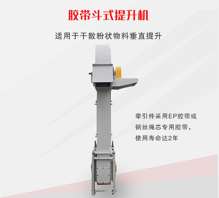 1.提升范圍廣。膠帶斗式提升機可提升各種粉狀、粒狀和塊狀(≤30mm)物料,物料溫度≤120℃.