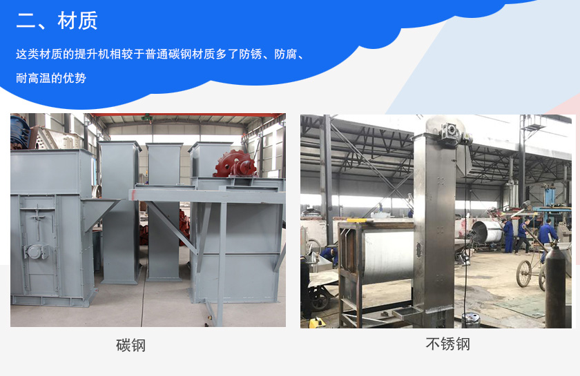 對(duì)于衛(wèi)生環(huán)境要求較高的行業(yè)(如:食品)在購(gòu)買是就會(huì)選擇不銹鋼材質(zhì)制作而成的NE板鏈提升機(jī),這類材質(zhì)的提升機(jī)相較于普通碳鋼材質(zhì)多了防銹、防腐、耐高溫的優(yōu)勢(shì),整機(jī)經(jīng)過(guò)嚴(yán)格的拋光處理后表面光滑無(wú)任何毛刺,焊接之處經(jīng)過(guò)打磨而成,清理方便,但是其成本也比碳鋼材質(zhì)要高,所以價(jià)格會(huì)相對(duì)貴一些。