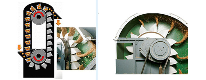 1、大容量的料斗密集型布置,在物料提升時(shí)幾乎無回料和挖料現(xiàn)象,無效功率少。